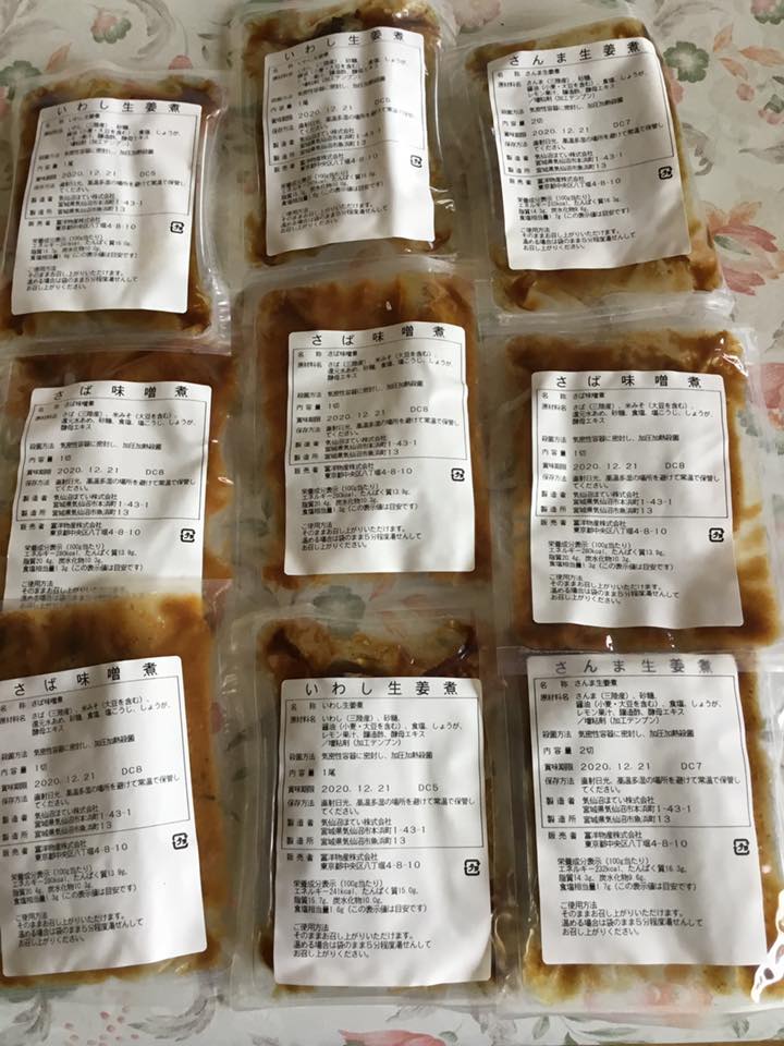 教会員の方から海産物の本場味噌煮(イワシ、サンマ、サバ)をお土産にいただく。フードバンクにも使える。感謝