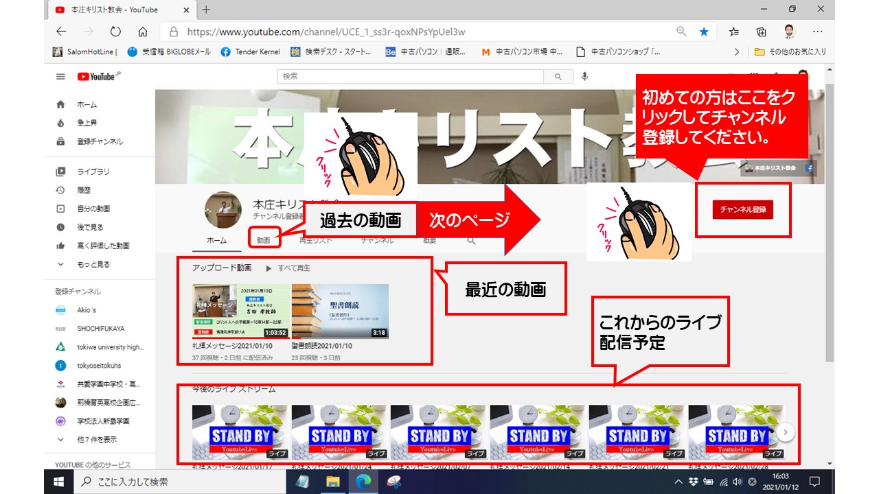 Youtubeチャンネルの使い方ver2 2021 1/13 礼拝メッセージ 2021年1月13日 Youtubeの「ライブ配信」や「過去動画」を視聴される場合のご案内です。 ▼下の画面をクリックすると説明の入った大きな画像になります。ここから利用方法をご覧いただけます。 礼拝メッセージ よかったらシェアしてね! URLをコピーしました! URLをコピーしました!