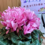 でもチュウリップが大きくなって来ました。シクラメンもまだまだ元気です