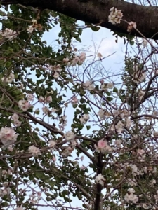 公園の花が綺麗です。桜も咲いています。