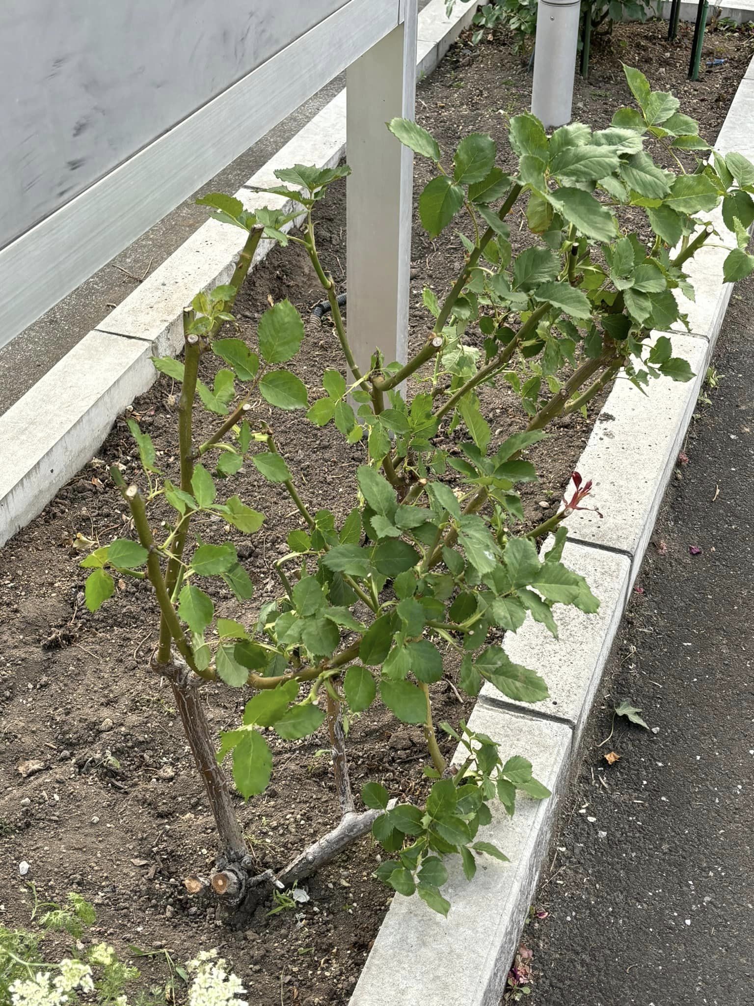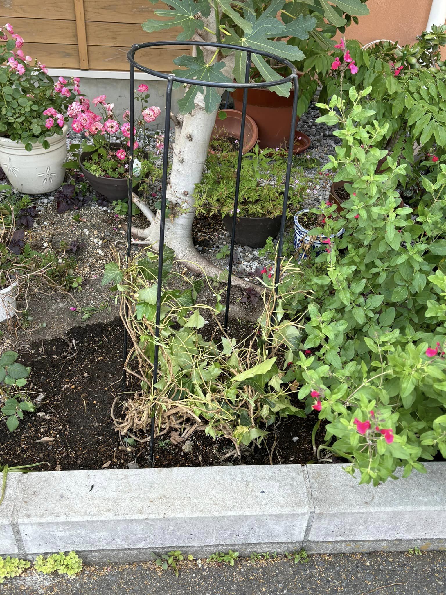 バラの位置が悪いので一本抜いて風通しを良くしてくれた。ツルもバラの邪魔にならないように移し替えてくれた。