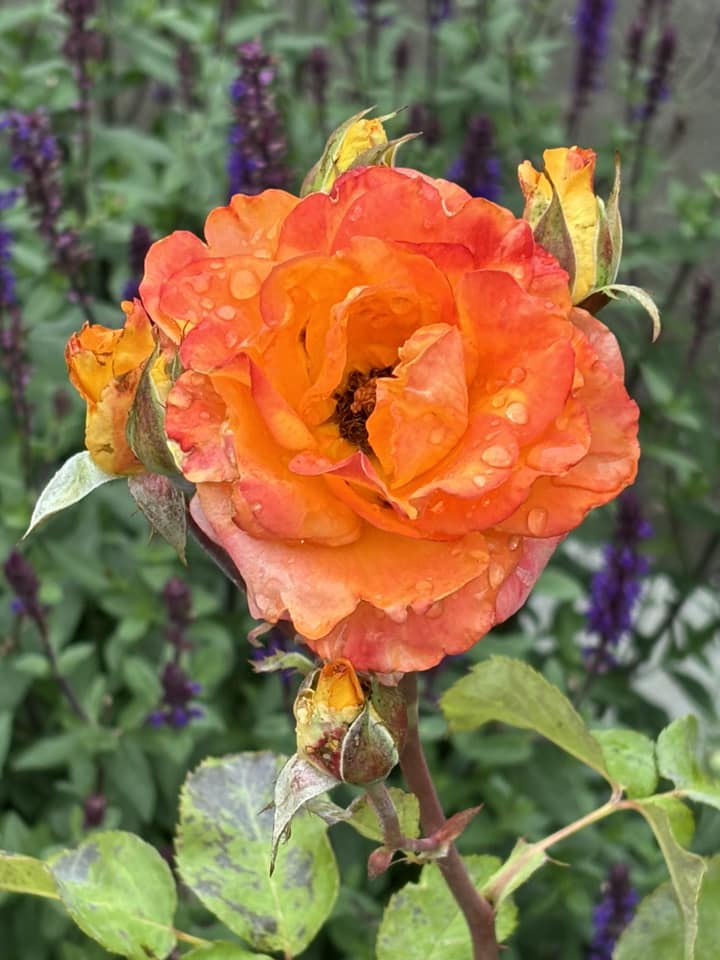 月末の朝、雨が上がり事務処理が終わって気分転換で庭を見ています。色々な花が咲き出しています。第二弾目のバラも咲き出した。今日はこれから一日中ゼカリヤ書5章からの説教準備です。