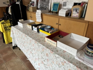 教会バザー開催中__2024.6.7 2024 6/07 バザー(ミニバザー) 2024年6月7日 教会バザー スタッフが陳列方向を変えています。 10円から500円コーナー迄。 衣類は基本100円です。 バザー(ミニバザー) よかったらシェアしてね! URLをコピーしました! URLをコピーしました!