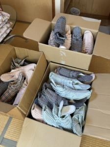 支援者がスリッパを寄付していただきました。能登被災地にもプレゼント出来そうです。