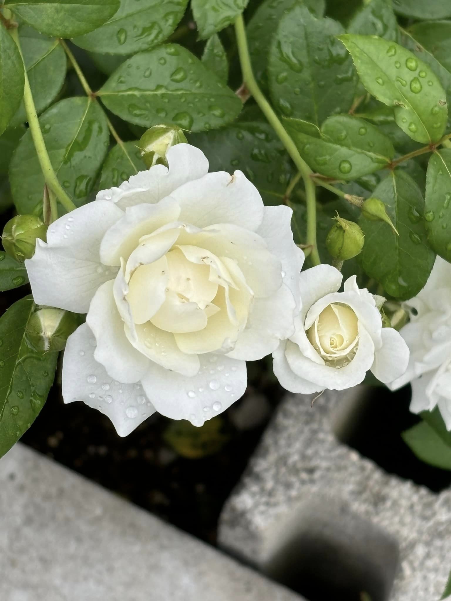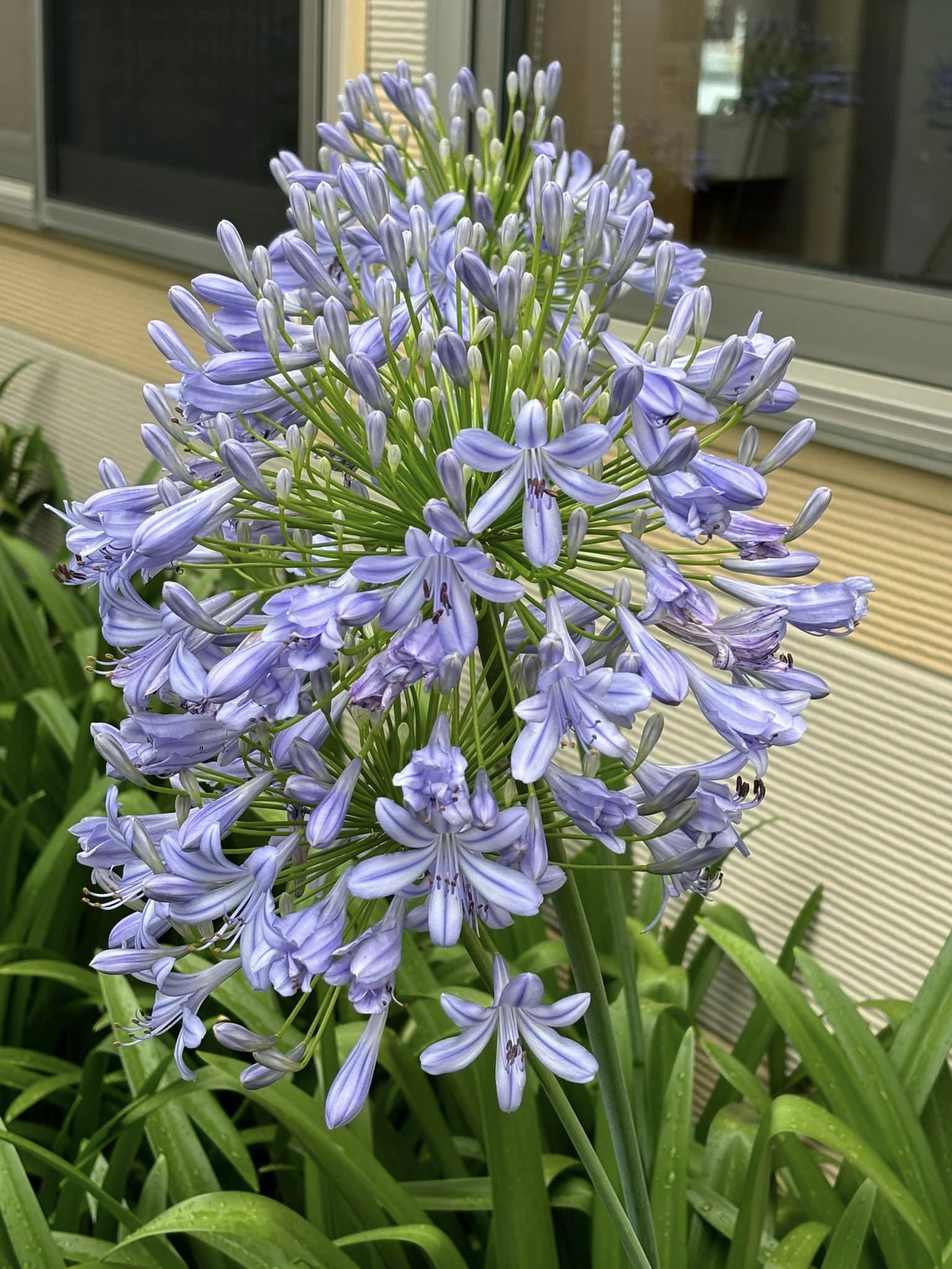 梅雨空の中でアガパンサスとアイスバーグがしっとり咲いています。とても嬉しい気分になります。
