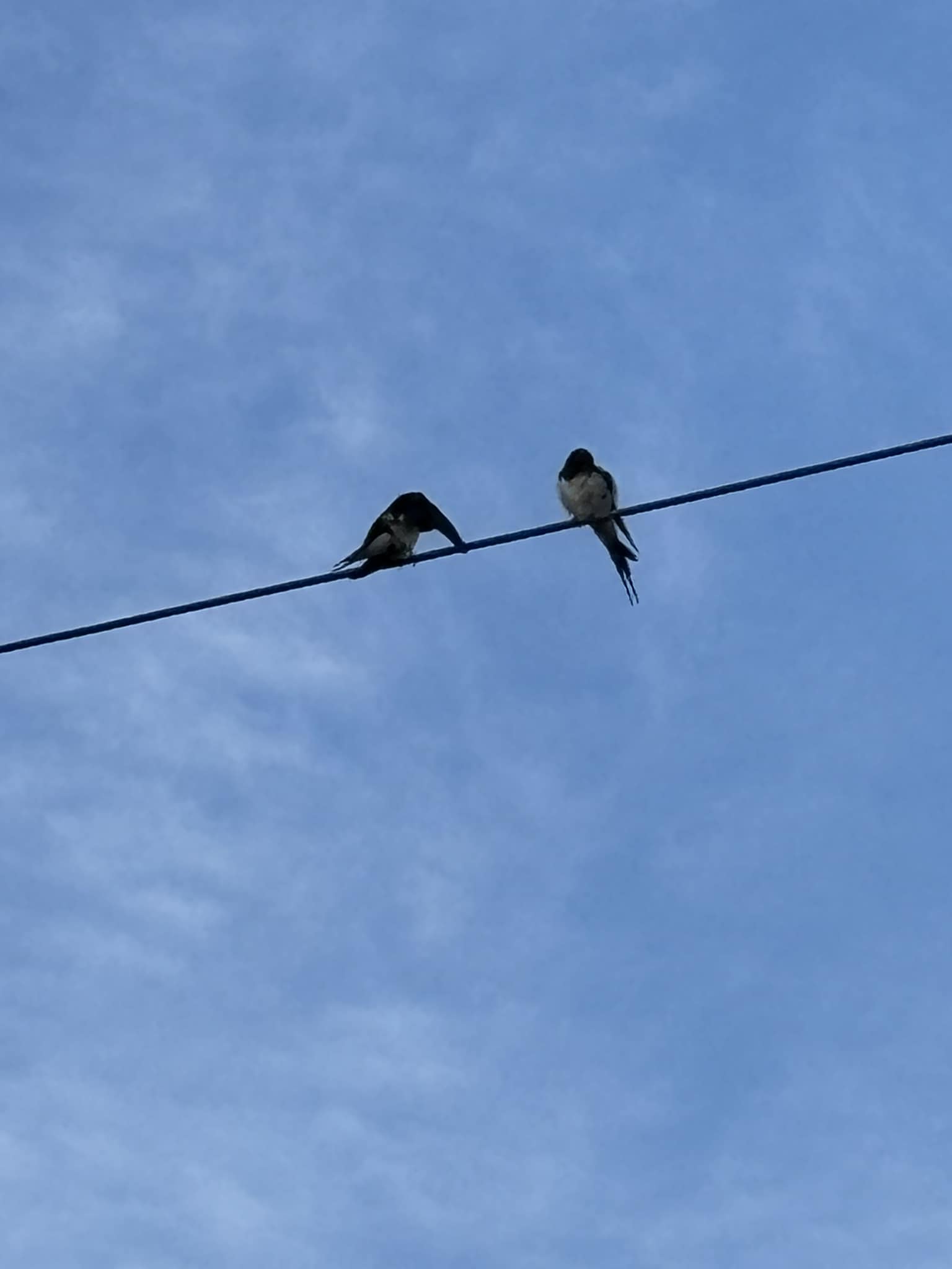 2回目の子育てをしようとした矢先にカラスに巣を落とされたツバメ夫婦が今朝姿を見せてくれました。何となく元気がなさそうに見えます。