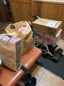 米1.6キロ、18袋と婦人用品を用意しました。