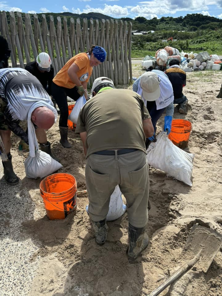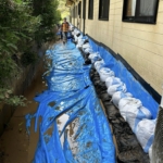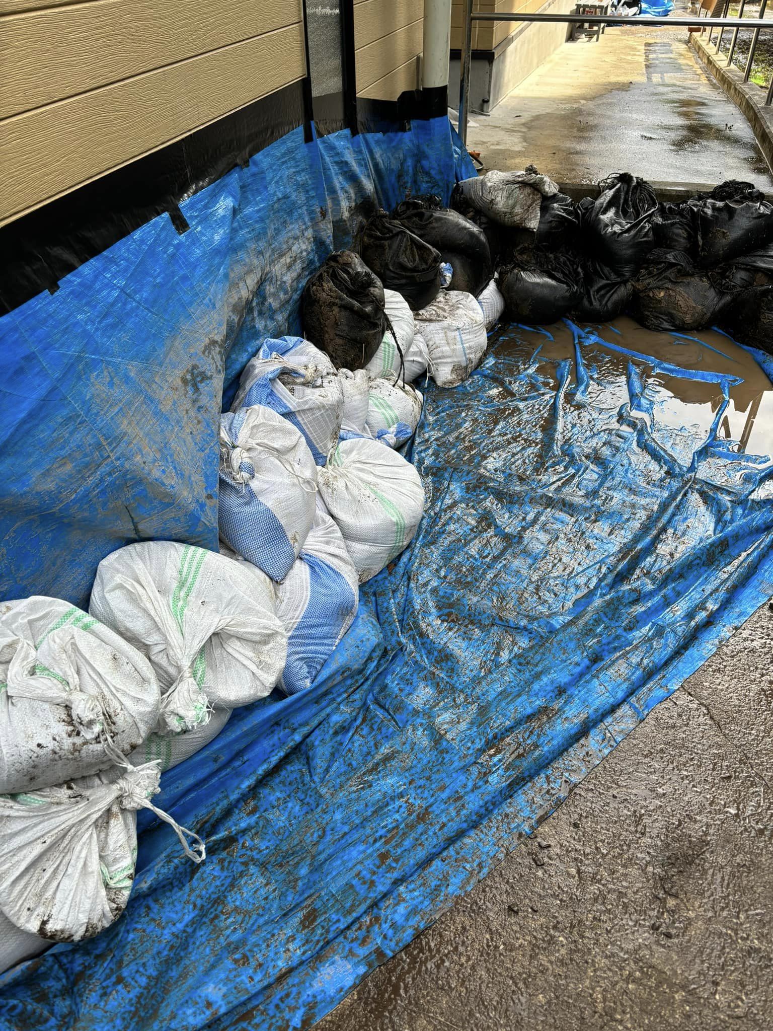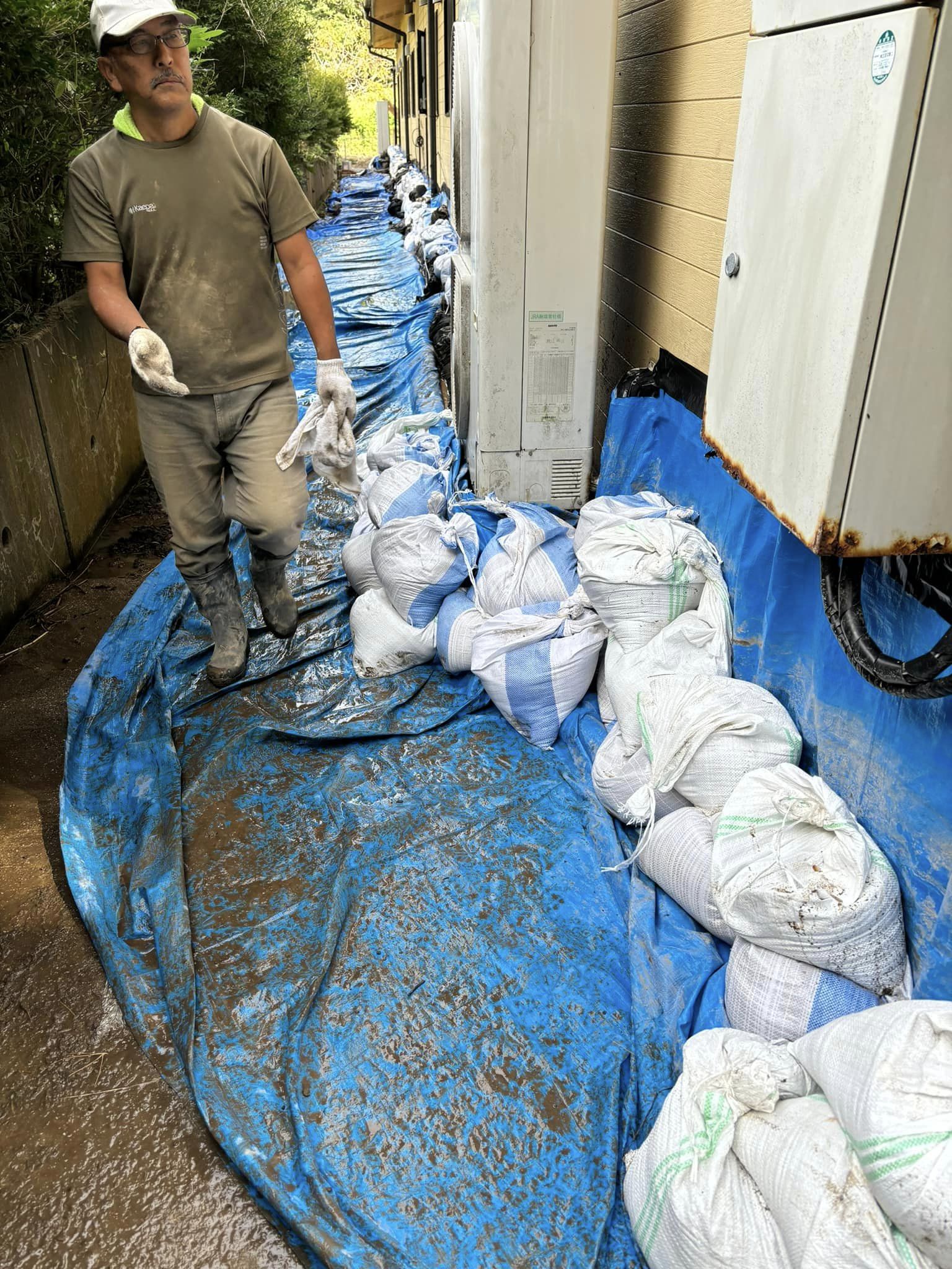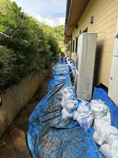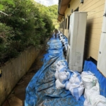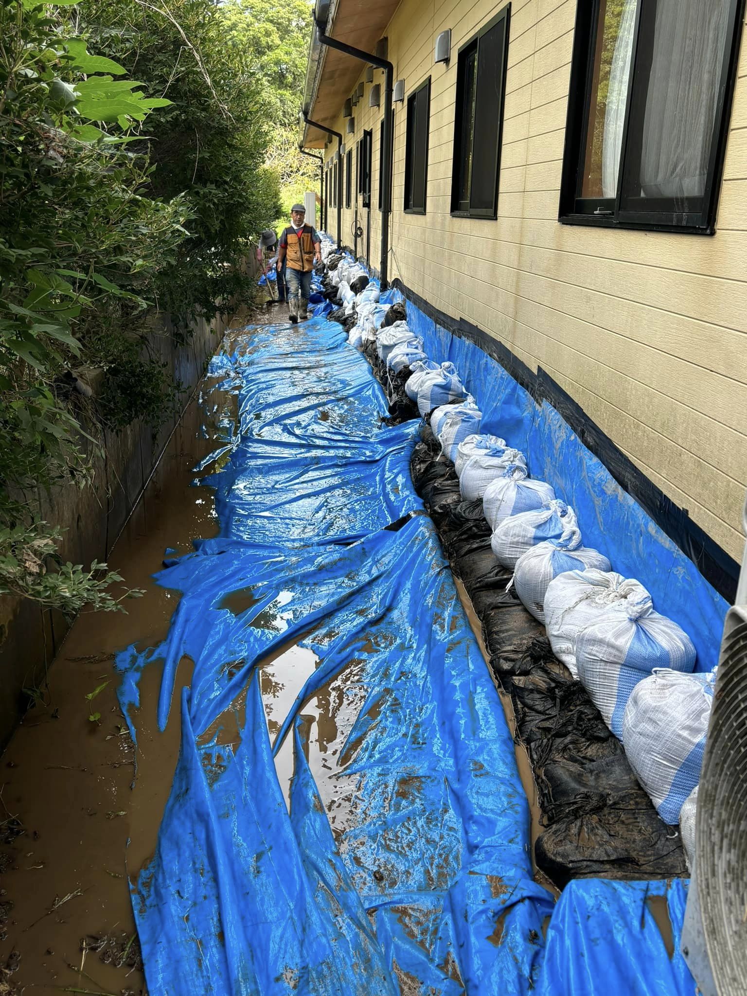 ❻高齢者施設の土嚢200個設置完了です。総勢20名で半日の作業でした。
