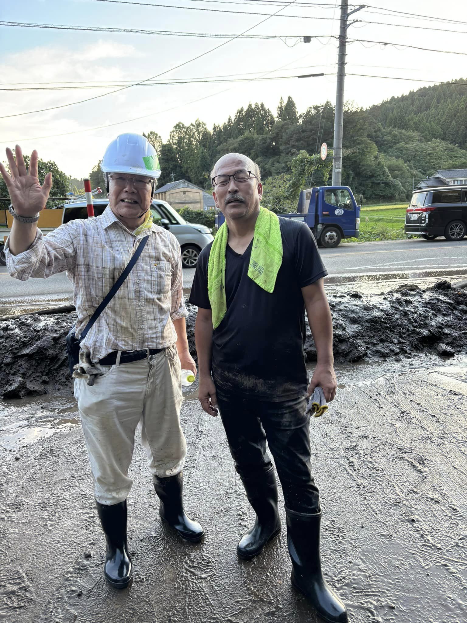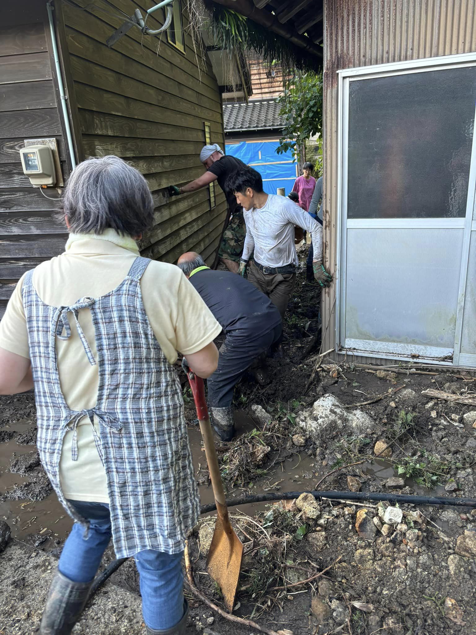 二軒目の泥払いボランティア。総勢12人で無事完了。ご依頼者も大感激。