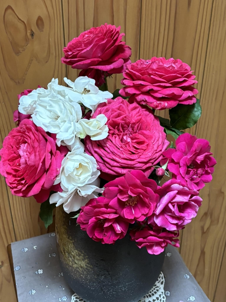 玄関の花を新しくしました。 来会者を歓迎します。全品庭の花です。 -