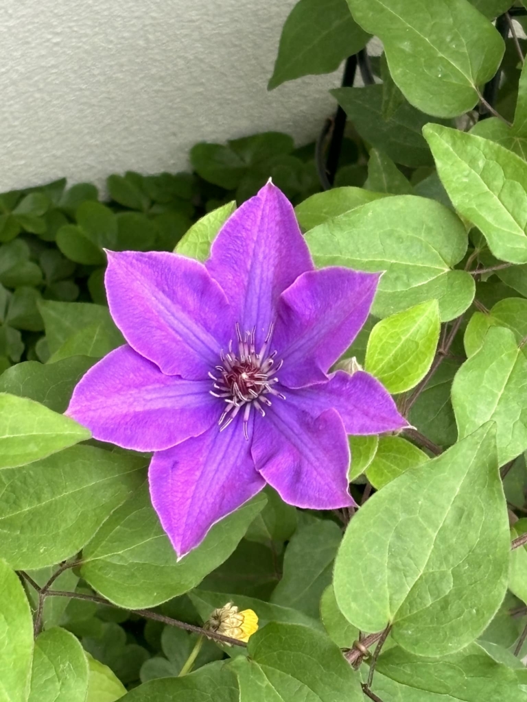 毎朝庭を見るのが楽しみです。 今日もまた新しい花が咲いていた。 名前は忘れましたが、去年プレゼントしてもらった花というには覚えています。あっ思い出した。テッセンだった。 そんな訳で今日も宜しくお願いします。 -