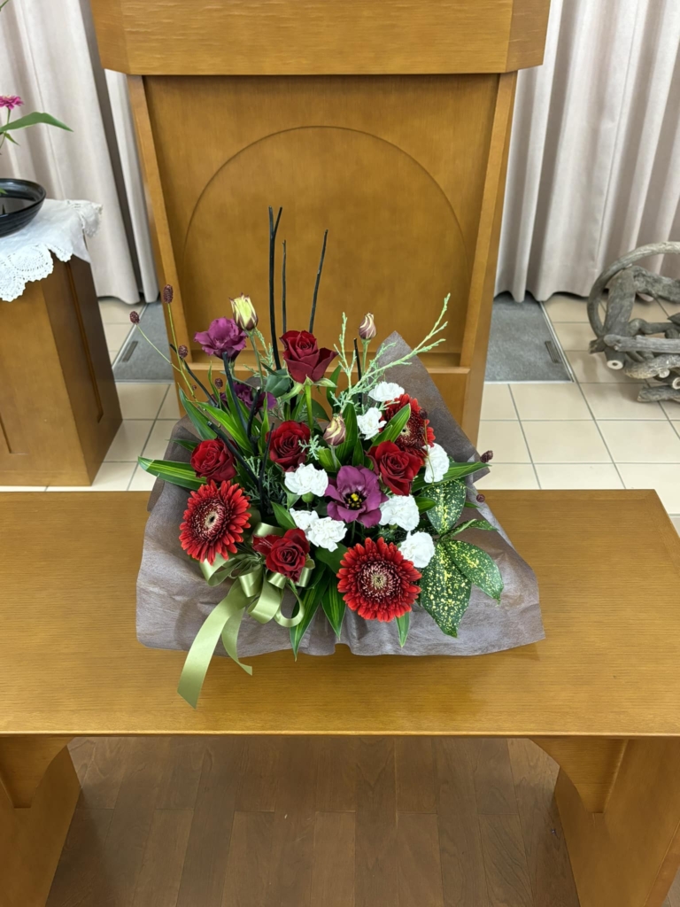 主の身許に召されたお母様を記念する為に礼拝に来られた家族が、お花を寄付してくださいました。平安を祈ります。 -