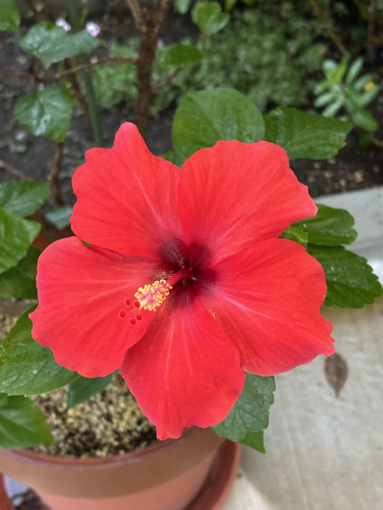 家に帰ってきたらハイビスカスが歓迎していました。今日も咲いてくれてありがとう。 -