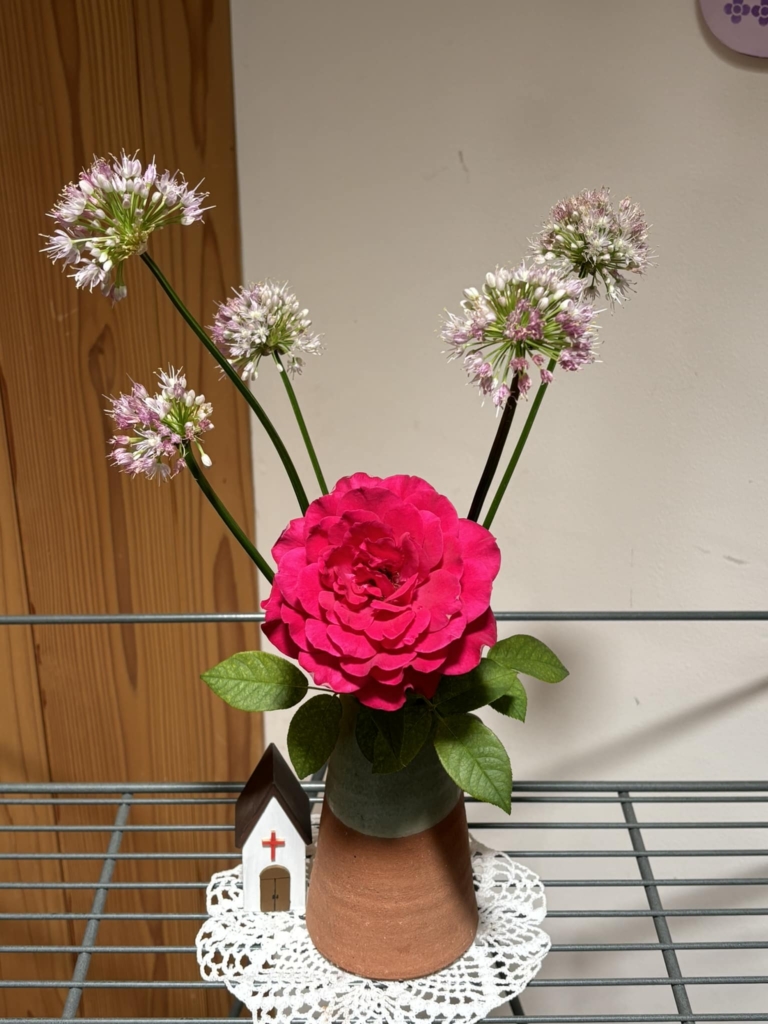 今日の礼拝に備えて香りの良いバラが玄関に用意された。奉仕者の皆さんありがとうございます。 -