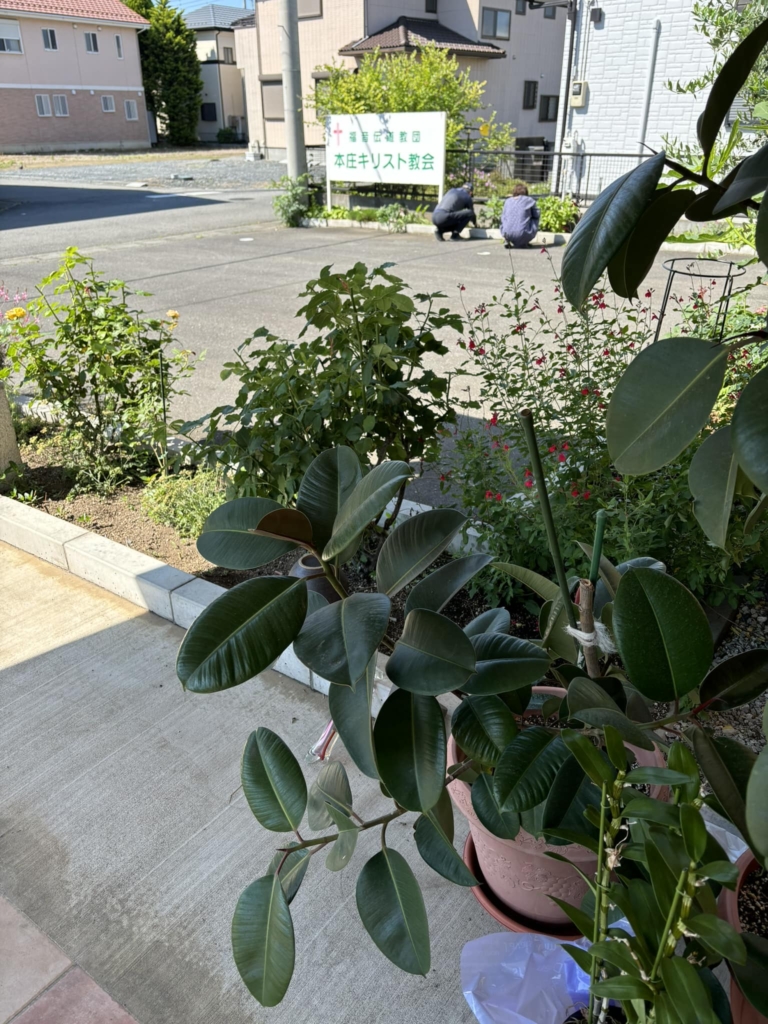 早朝から近所のご主人が教会の庭を整備してくれています。ありがたいです。因みに今日はダリヤの追肥と薔薇の🌹消毒だとか。 -
