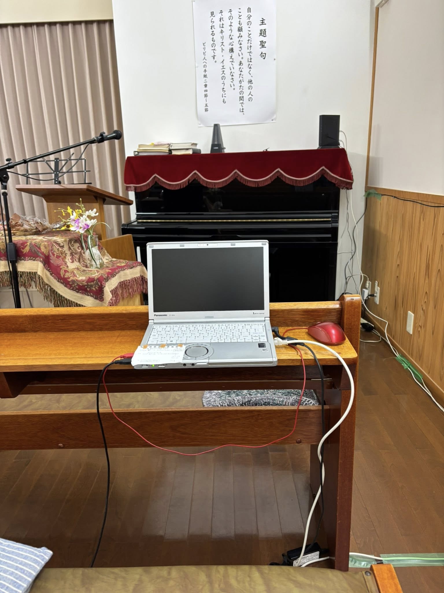 同時間帯に風間牧師(ミッション47)と浅香さん(SHLラボ)が音響機器の整備をしてくれた。又一歩進んだ。感謝。