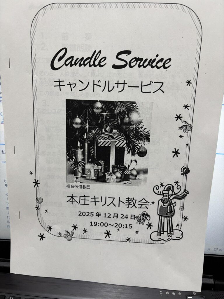 クリスマスイブ礼拝(ご案内) 2025 12/23 イベントアーカイブ イベント2025年 2025年12月23日 キャンドルサービスを12月24日夜7:00〜8:15 本庄キリスト教会にて執り行います。是非お出かけくださいませ。 イベントアーカイブ イベント2025年 よかったらシェアしてね! URLをコピーしました! URLをコピーしました!