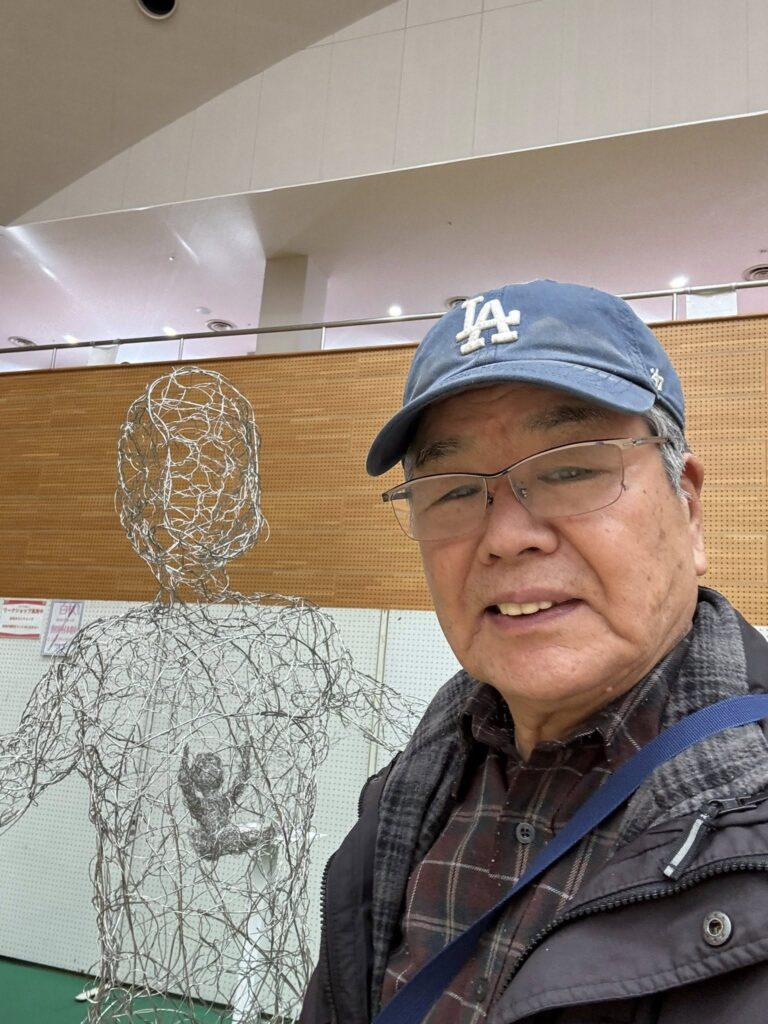 本庄市広報観光大使のビクターさん(彫刻家)の作品の前で写真を撮らせてもらった。