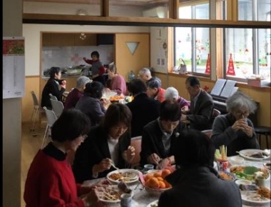 本庄キリスト教会では10時からクリスマス賛美礼拝、その後、愛餐会がありました。 -