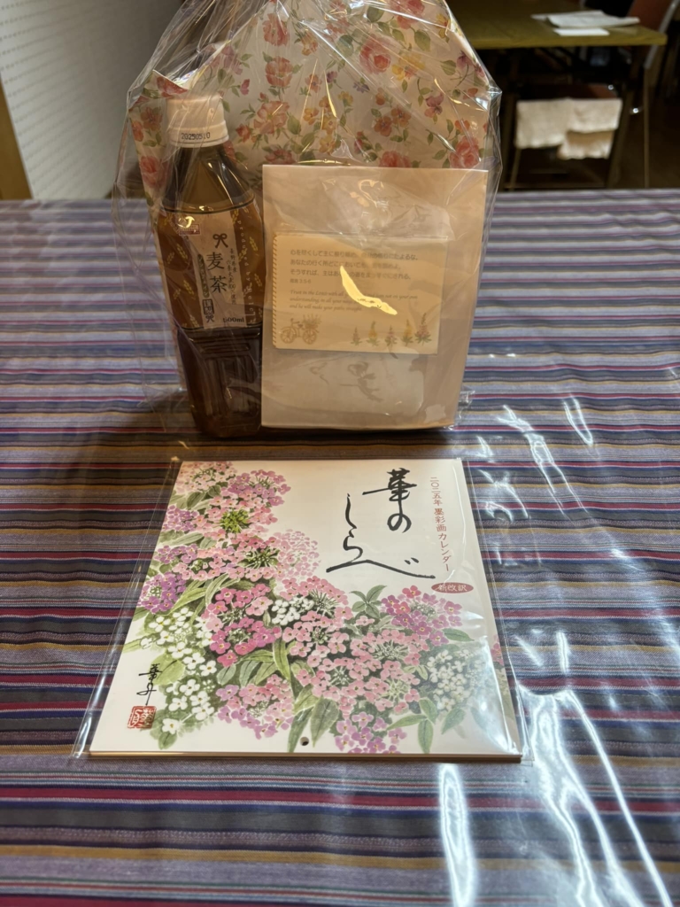 80歳以上の方8名に敬老祝いのプレゼントを届けました。 華のしらべのカレンダー2025は好評です。来年も元気に歩んでくださいという願いが込められています。 -