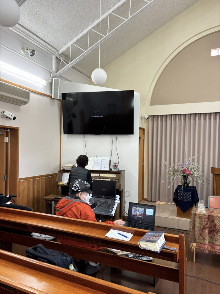 10時からの礼拝に備えスタッフの皆さんが準備中です。礼拝後は皆さんで会堂の一斉清掃です。今日も宜しくお願い致します。 -