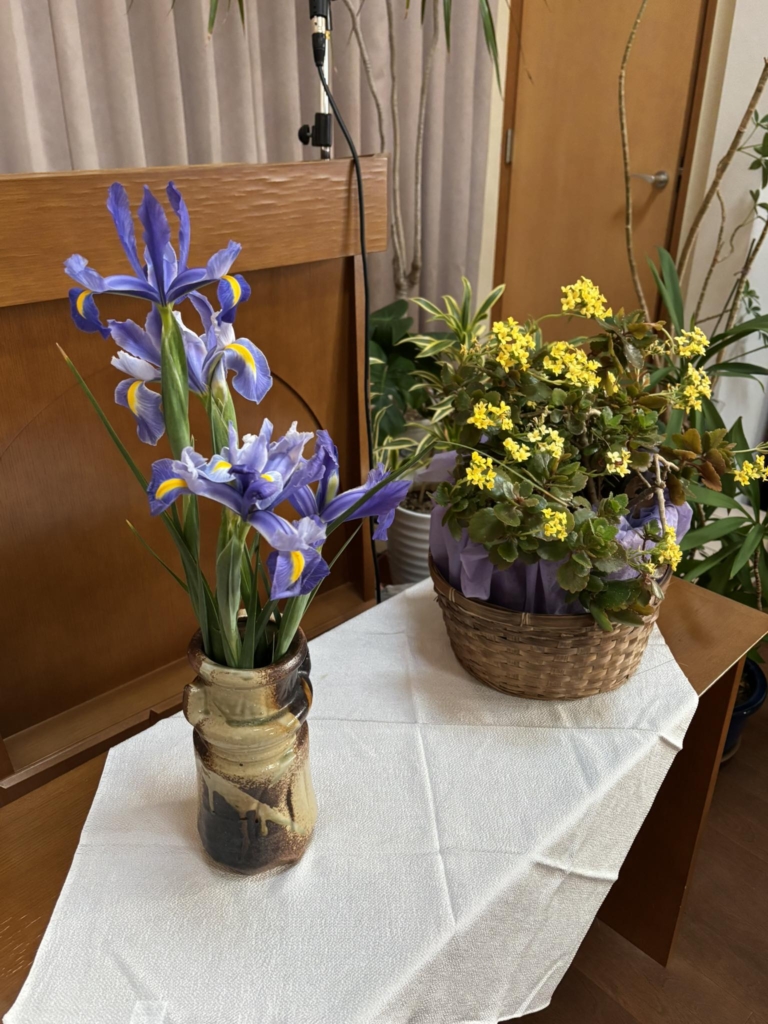 今日の礼拝準備が整いました。お花の準備やライブ配信の設定完了。今日の礼拝メッセージ原稿も本庄キリスト教会ホームページにUPされます。よろしかったらご覧下さい。 -