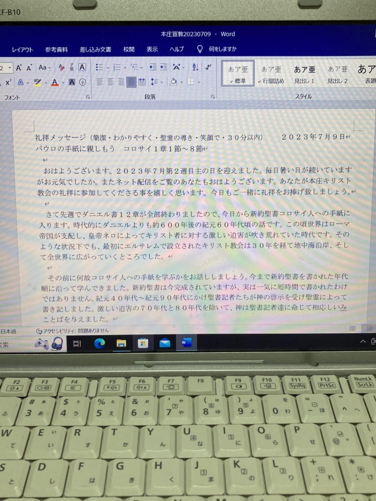 礼拝説教原稿の加筆修正が終わりました___7/8