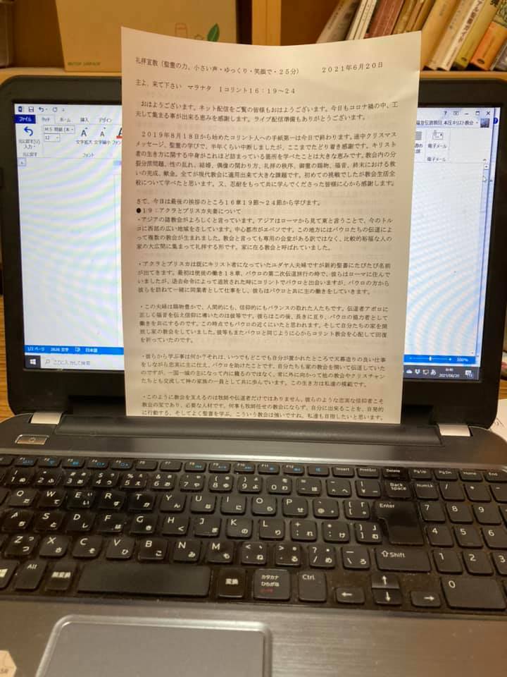 今日の礼拝メッセージ原稿が仕上がった。金曜日から3回目の見直しする。A4、2枚、2600字。この原稿で2回聖書メッセージします。お祈りください。 -
