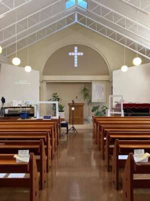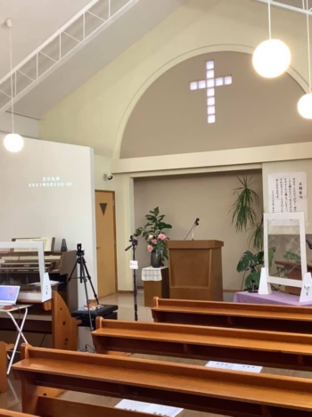 礼拝準備整いました。ライブ配信予定 コロナ対策として、密を避け、途中で換気、讃美歌は2番まで、声も小さくしています。10時と15時に分けています。それでは良い1週間をお過ごしください。 -