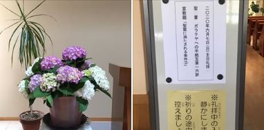 おはようございます。今日は曇り空。 新しい一週間を迎えることができ感謝します。庭の水やりが終わり、チャペルの点検をし、礼拝準備が整いました。無会衆礼拝は今日で最後です。6月からコロナ対策をしつつ通常に近づいた形で集会等を致します。是非お越...