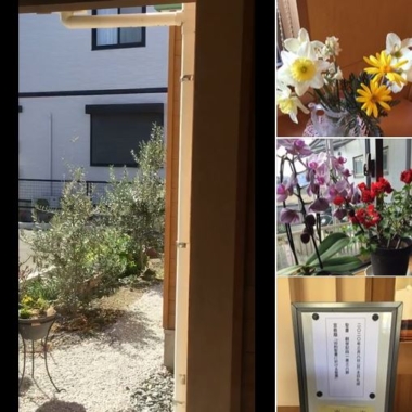 夜の礼拝が捧げられました。 今日は小さいお友達も含めて6名の礼拝でした。テーマは「旧約聖書に於ける聖霊の働き」を旧約聖書の創世記や出エジプト記、民数記から学び合いました。花が綺麗なので記念写真をパチリ。季節柄全員マスク着用です。 -