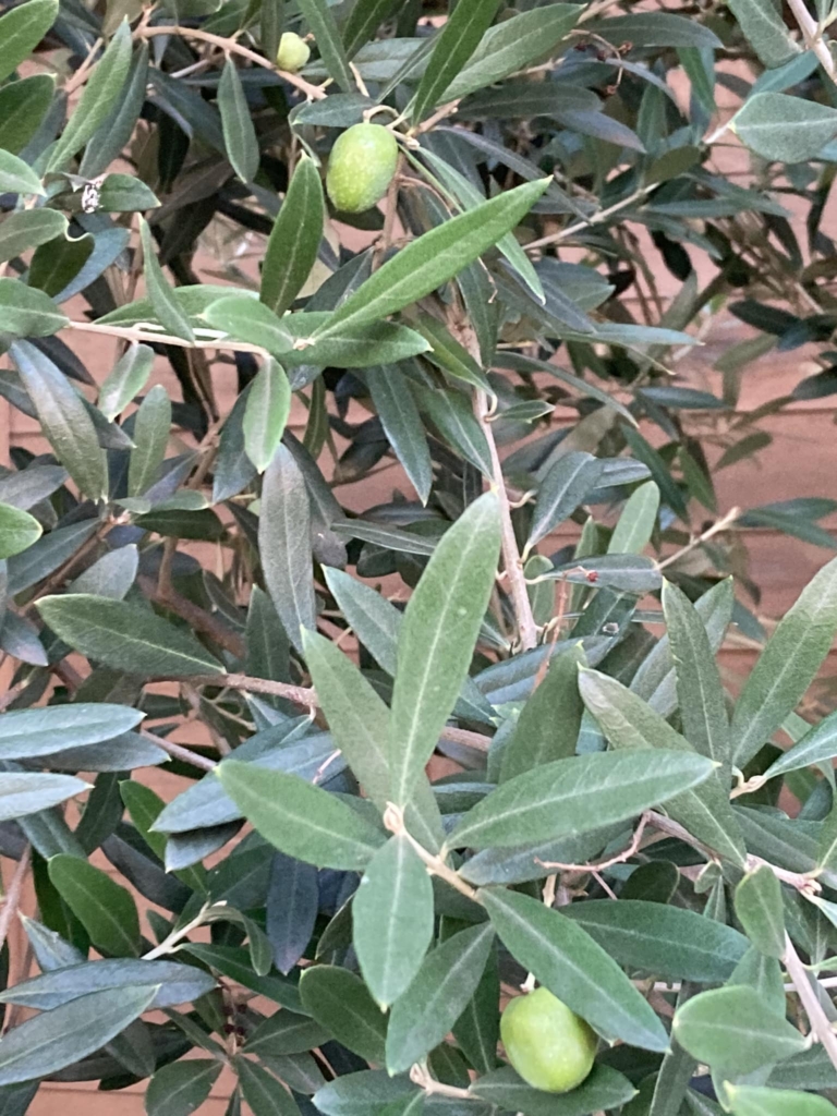 発見 植え替えから5年目にして初めてオリーブの実が3個なった。 嬉しくてたまらない。 -