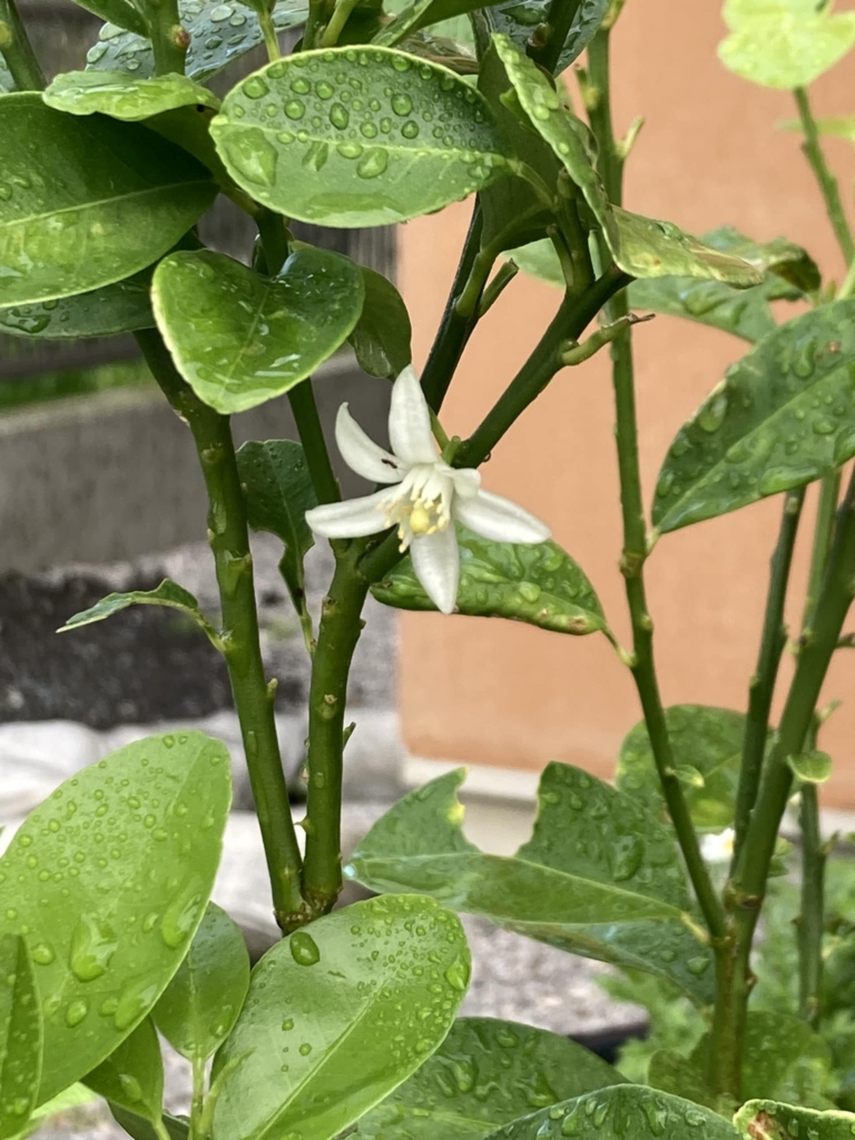 春に植え替えて貰った金柑が花を咲かせてくれました。朝から良い気分です。 -