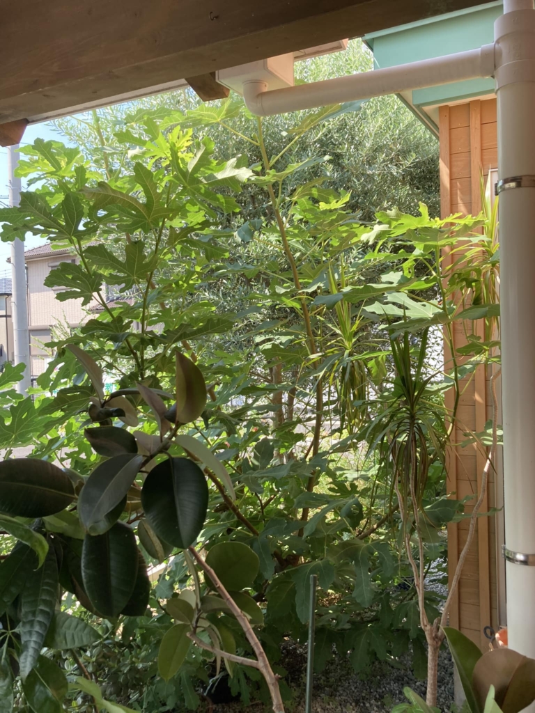 暑い中 いちじくが木陰を作ってくれている。 ありがとう。甘い無花果も期待しています。 -
