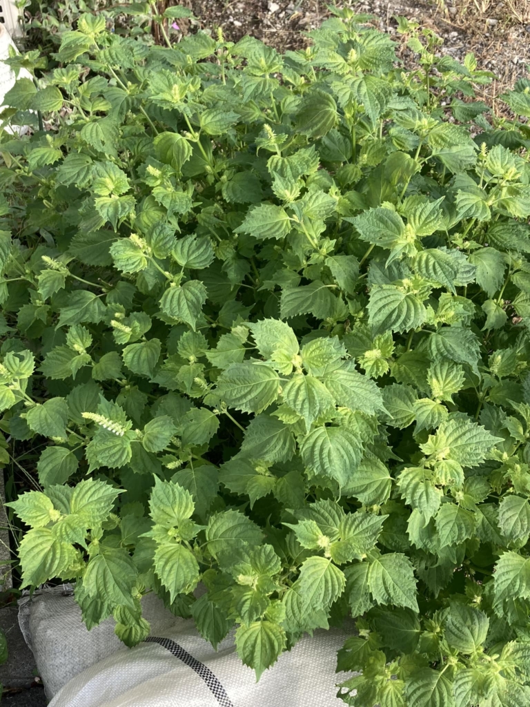 庭の青紫蘇が成長し花が咲き始めています。 秋になって紫蘇の実漬けが楽しみです。 -