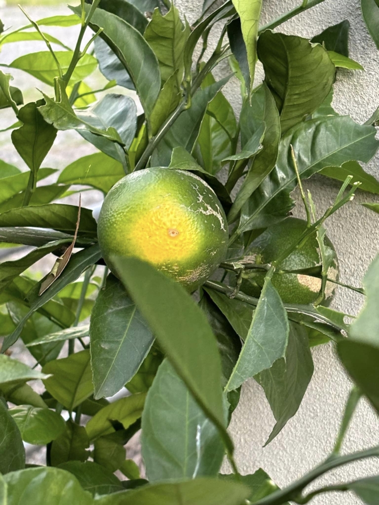 みかん🍊の初収穫。みかんが割れたので食べてみた。甘くはないがさっぱりしていた。感謝します。 -