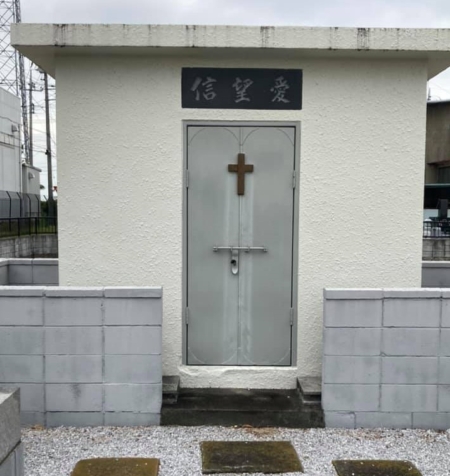 午後は本庄キリスト教会納骨堂の点検中。雑草もなく良好です。 -