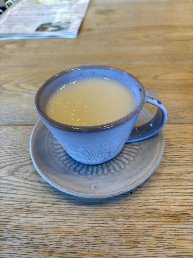 今日はクウロンヌナチューレさんで温かい甘酒を飲んでいます。これを飲んで腸は快調です。