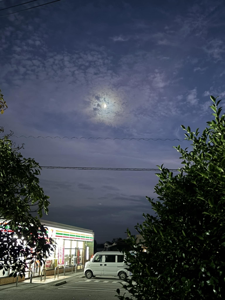 夕方セブン イレブンまで歩いた。 上弦の月がとても綺麗でした。 今日は3キロ歩いたので良しとする。 -