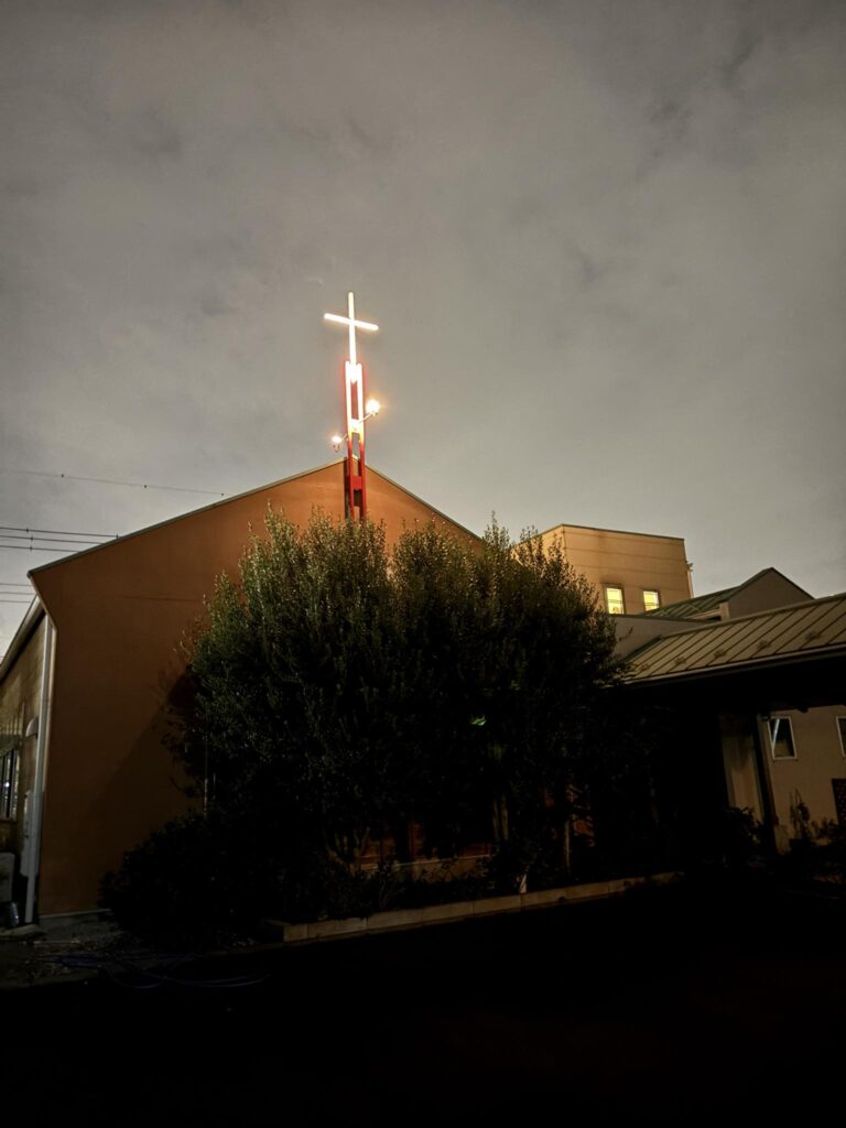 今、散歩から帰って来ました。教会の明かりを見るとホッとします。最近足が痛いので思うように歩けません。71歳を過ぎてからの症状です。しばらく様子を見ながら、少しずつ歩こうと思っています。今日は涼しいので足が前に出ました。周りの皆様に支えられ...