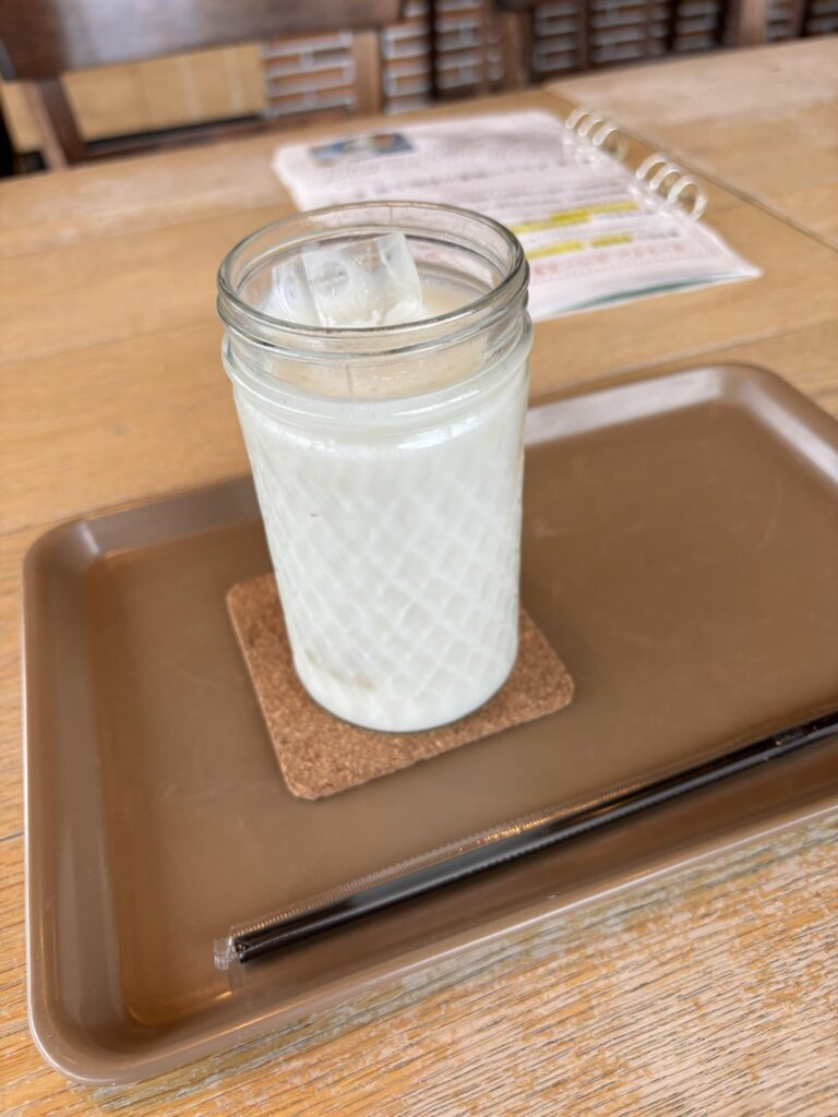 手作り甘酒は品切れとのことで、今日はカフェオレ飲んで、一日スタートです。 -