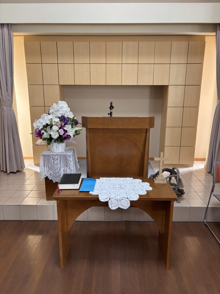 3月に主のみもとへ帰られたK兄弟の「土のちり棚納入礼拝」が執り行われるに伴いお花が届きました。ご家族の上に主の慰めと励ましが豊かにありますように。