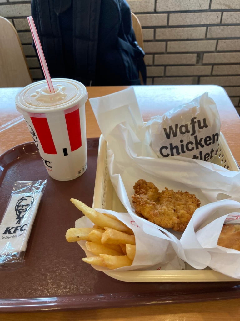 仕事で外出しています。 遅いお昼をケンタッキーで。 ケンタッキーは初めてです。 -