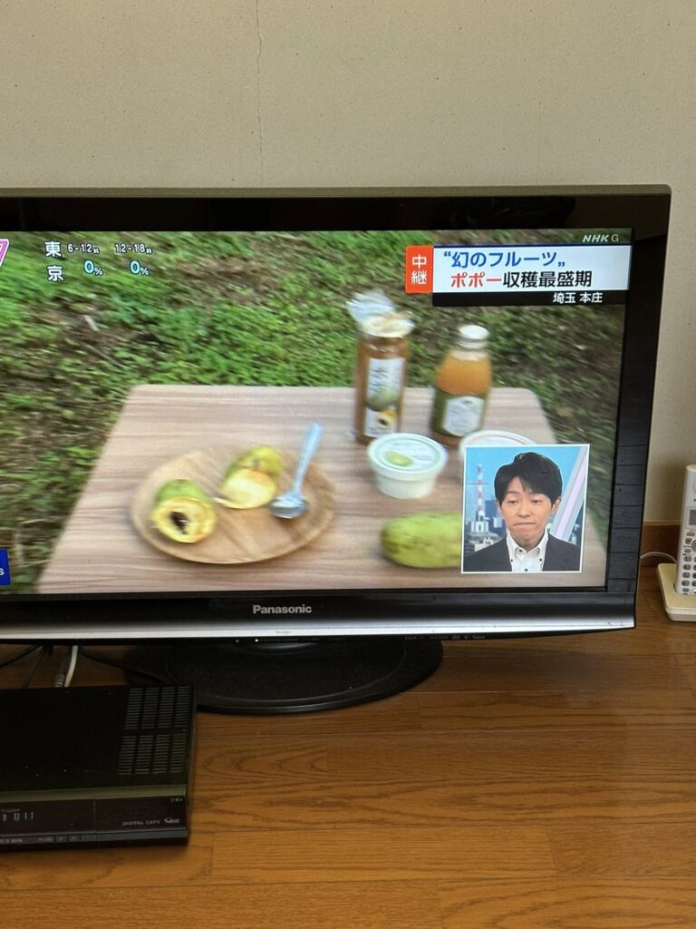 先週NHK朝のニュースで「幻のフルーツ ポポー」が本庄市で栽培されている事が紹介されました。今日は友達が道の駅で購入した物を持って来てくれた。バナナの様な味で美味しかった。 -