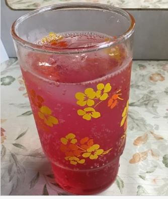 礼拝後の炭酸しそジュースで元気を取り戻します。午後3時の礼拝に備えて。 -