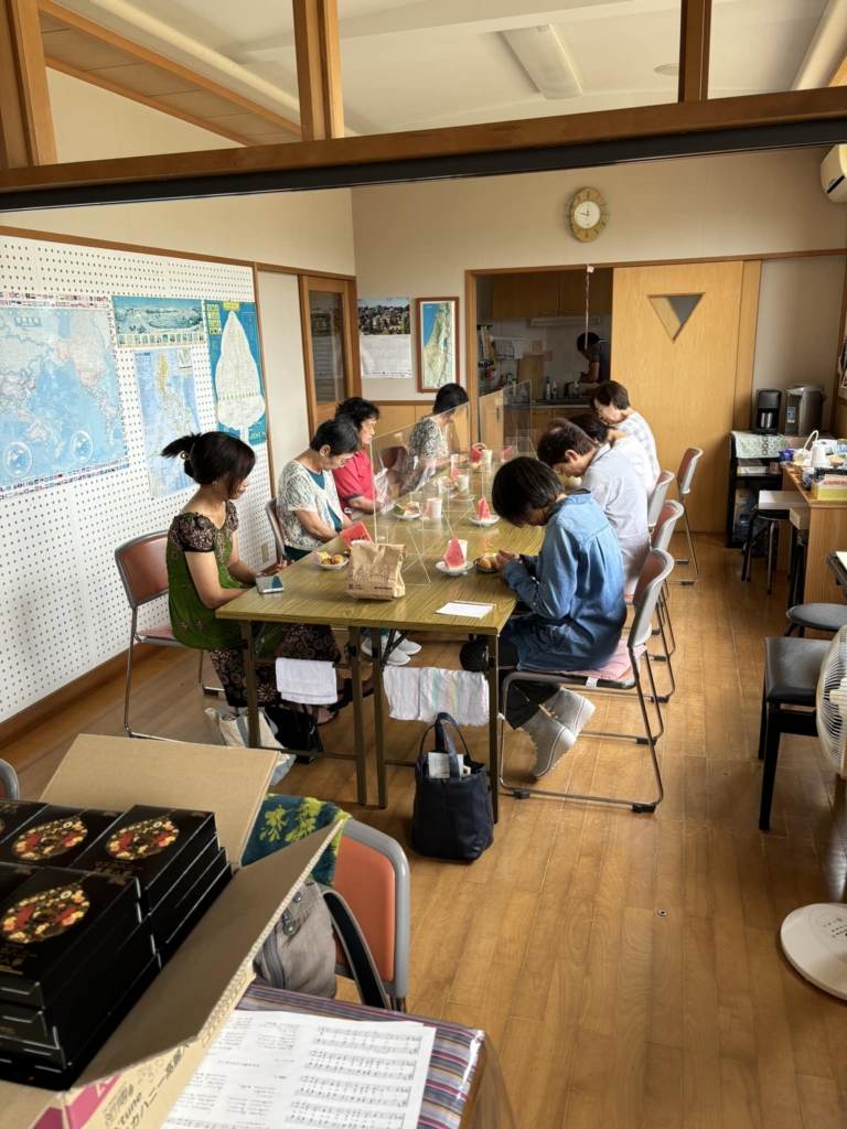 礼拝後に残った方々で🥔と🍉と🍪で交わりの時間を持っていました。 -