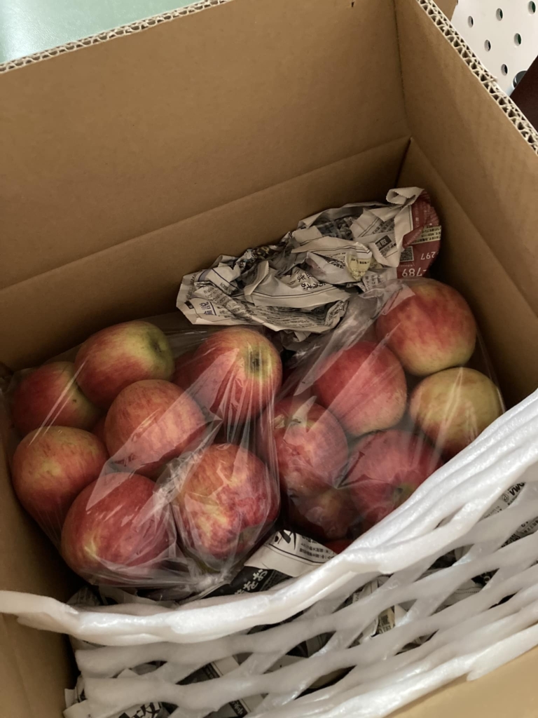 妻の友達Nさんが群馬県昭和村のりんご🍎を送ってくれました。品種はあかぎだそうです。 早速おすそ分けしています。感謝。 -