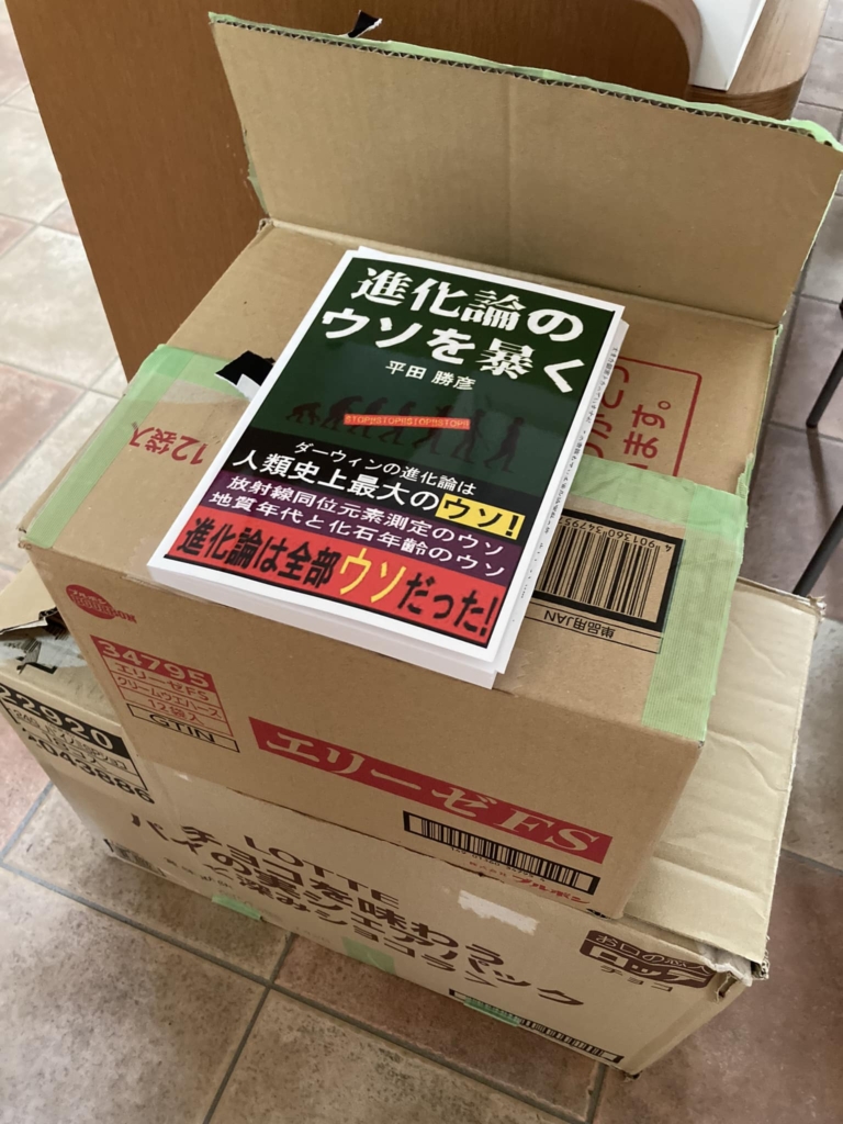 注文していた本、進化論の嘘を暴くが100冊届きました。感謝🥲 早速注文してくれた信仰の友に渡します。 -