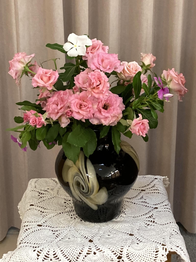 玄関にお花を用意して皆さまをお迎えする準備ができました。 -