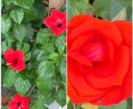 本庄キリスト教会の庭も涼しさと共にバラが良い色になってきました。ハイビスカスは次々に新しい花が咲いています -